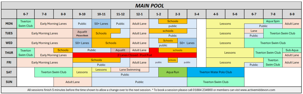 Thursday 12th February 2 Lanes closed 13:00-15:30 – No Public Swim
